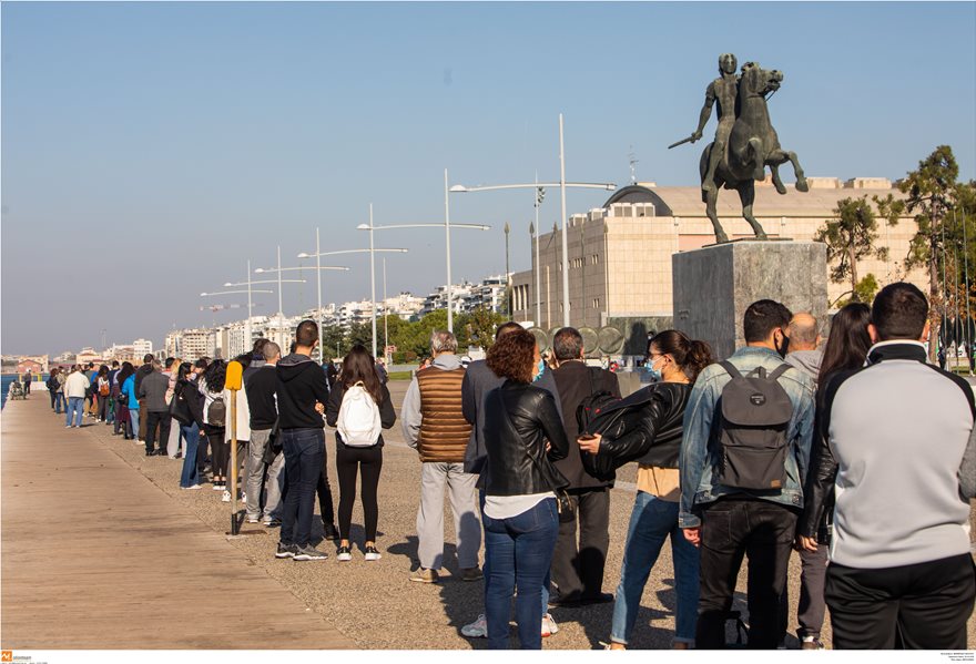 Θεσσαλονίκη: Ατελείωτες ουρές στην παραλία για τα δωρεάν τεστ λίγο πριν το lockdown